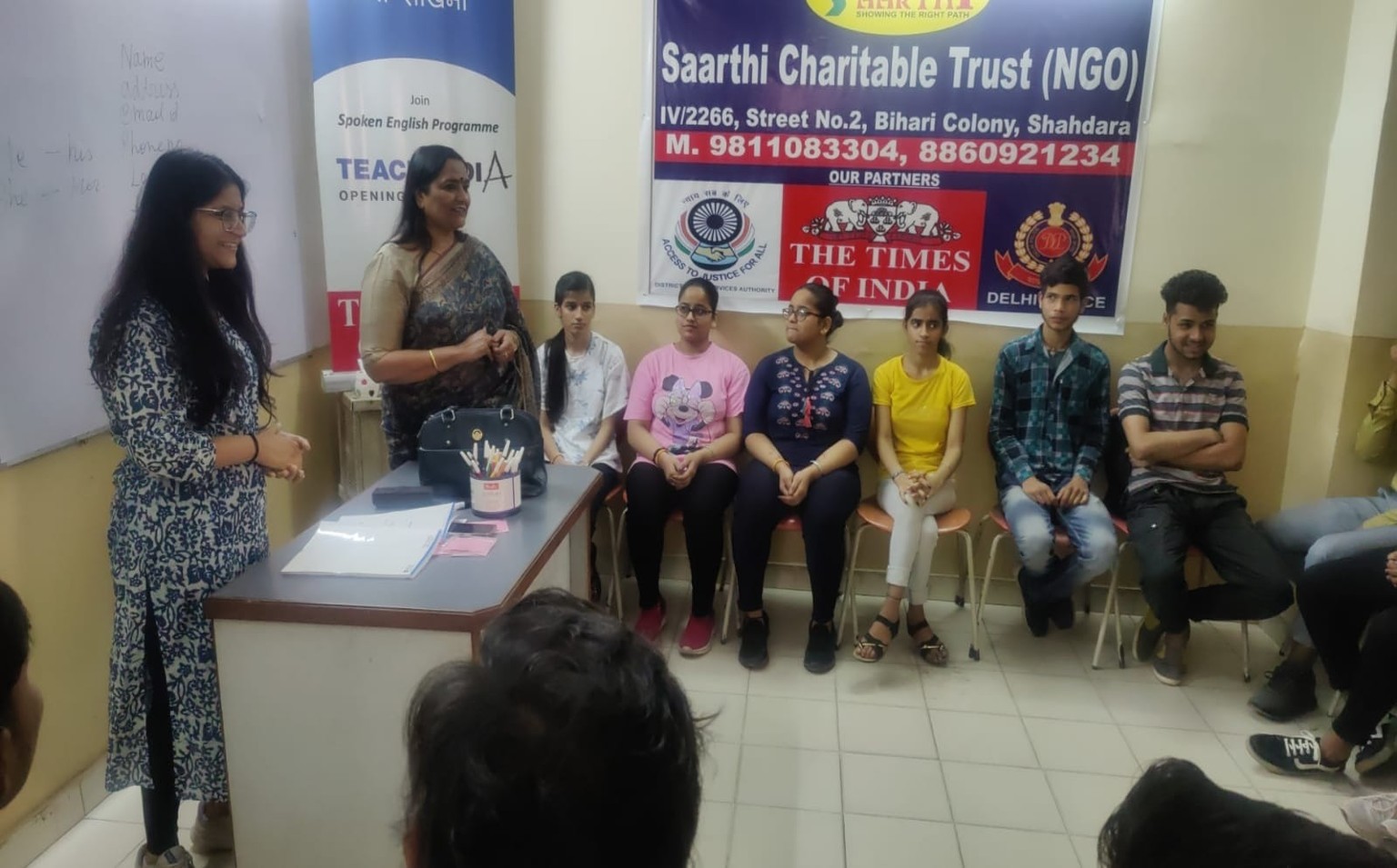 The initiative is implemented on the ground by dedicated partner NGOs, working mostly in underdeveloped urban sections. An important pillar of Teach India in reaching out to the target beneficiaries, the partner NGOs are responsible for organising the spoken English classes, getting the learners in the classrooms, and managing the day-to-day affairs at the teaching centre.